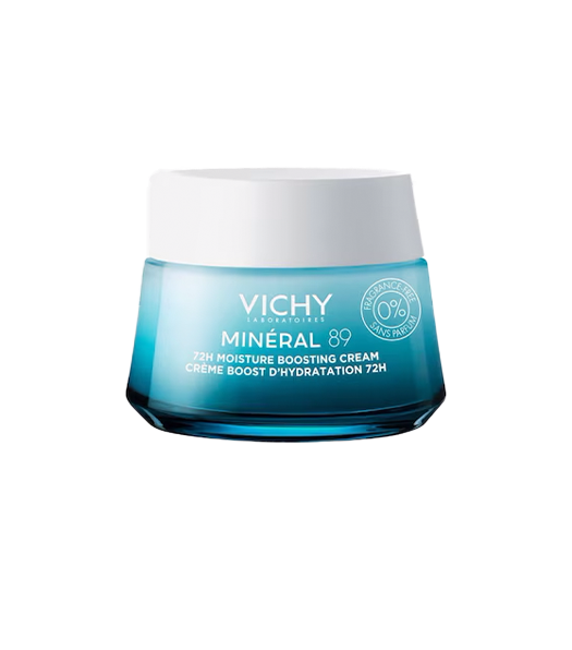 Bij blootstelling van de huid aan dagelijkse invloeden raakt de vochtbarrière verzwakt. Hierdoor verliest de huid zijn vitale elementen: water, mineralen, lipiden, vitaminen en hyaluronzuur. Bij Vichy hebben we de oplossing bedacht: Minéral 89 72u HYDRATERENDE CRÈME ZONDER PARFUM. Vichy Laboratoires heeft al deze vitale elementen voor de huid nu voor het eerst samengebracht in een frisse, smeltende crème. Deze versterkt de vochtbarrière van de huid met actieve bestanddelen die tot de derde laag van de epidermis doordringen en de huid tot drie dagen hydrateren.