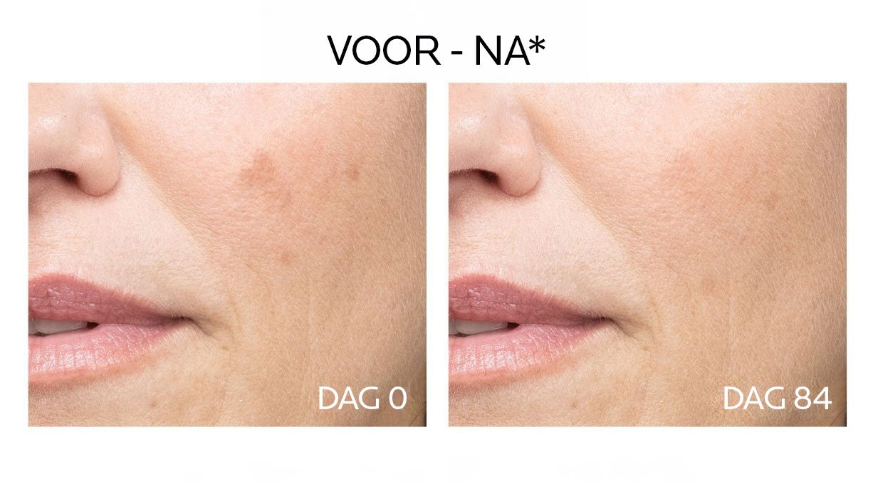 Vermindert zichtbare, hardnekkige pigmentvlekken door overtollige melanine af te vangen voordat deze de huid aantast.