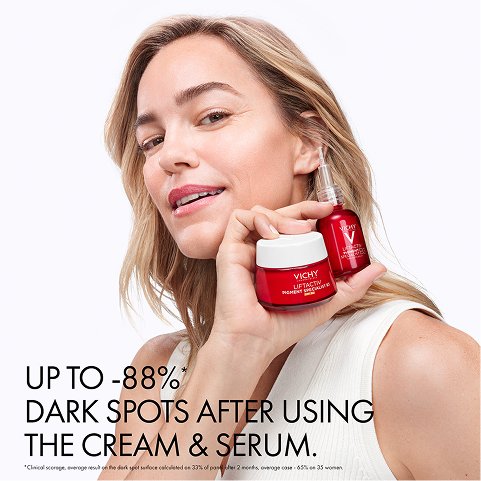 • Breng elke ochtend de Liftactiv Pigment Specialist B3 SPF50 Crème aan op een droge huid, na het Liftactiv serum tegen pigmentvlekken