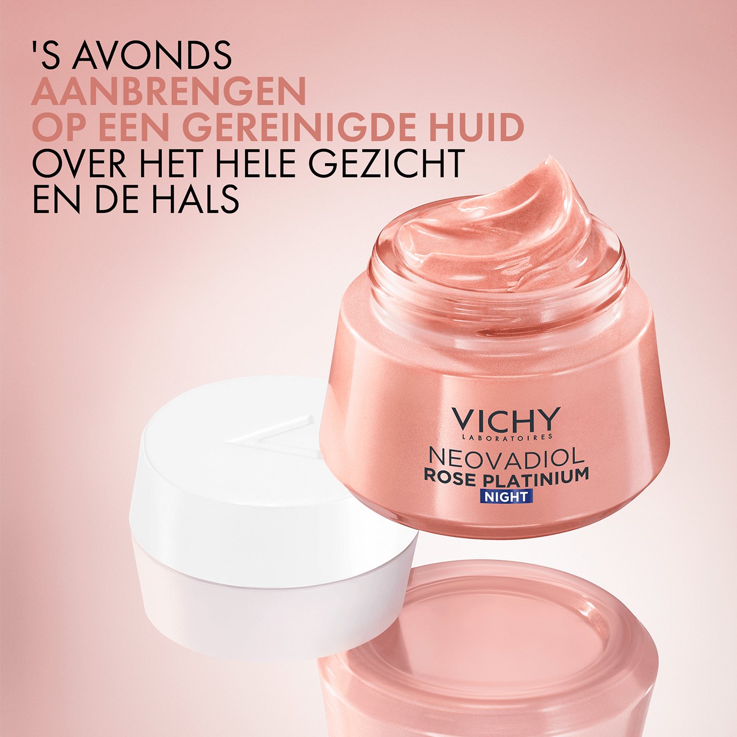 • Deze voedende en revitaliserende nachtcreme met roze pigmenten is ontwikkeld om wallen te verminderen en fijne lijntjes te vervagen. Het is geformuleerd met Cafeïne tegen zwelling, verstevigend Calcium en het versterkend Vulkanisch Water van Vichy. Rimpels zijn verminderd, voor een jeugdigere oogopslag.