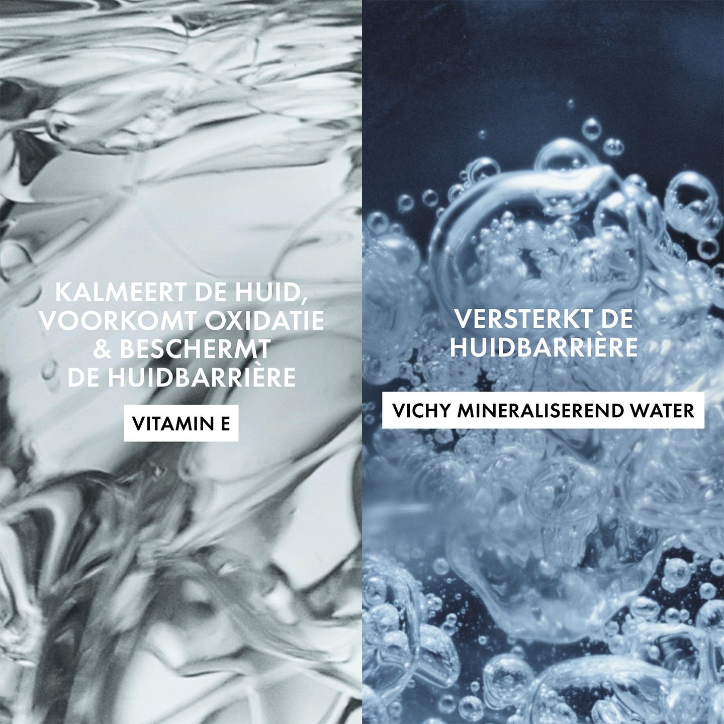 Naast bescherming tegen de zon is de formule verrijkt met vitamine E, dat bekendstaat om zijn voedende en anti-oxiderende werking en de huid helpt te beschermen tegen schadelijke invloeden van buitenaf. Daarnaast bevat de formule Vichy vulkanisch water, dat van nature verrijkt is met 15 essentiële mineralen. Dit unieke ingrediënt helpt de natuurlijke huidbarrière te versterken en bevordert zo de algehele gezondheid en veerkracht van de huid.