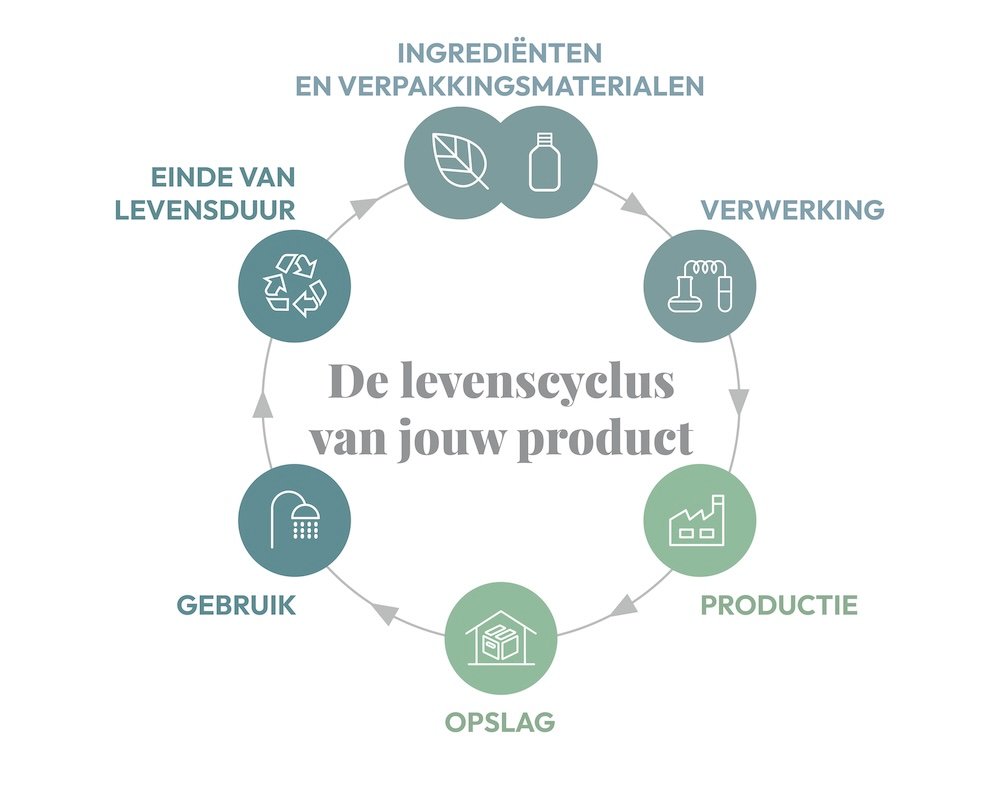 Deze score is berekend door de impact van uw product te meten gedurende de volledige levenscyclus: vanaf de inkoop van ingrediënten en verpakking, via de productie en het gebruik door de consument, tot zelfs na het gebruik, wanneer het product afval wordt.