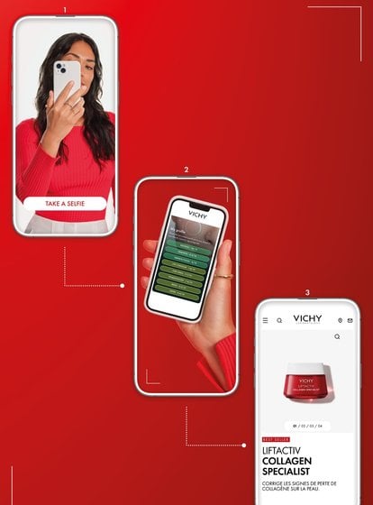 Ons algoritme analyseert je selfie op 7 parameters voor een gezonde huid - Fijne lijntjes, Rimpels, Stevigheid, Stralendheid, Pigmentvlekken, Onzuiverheden en Roodheid. De analyse gebeurt op basis van 21 klinische tekenen van veroudering. Het identificeert jouw huidprioriteiten met meer dan 95% nauwkeurigheid om je het juiste Vichy-protocol aan te bevelen voor de huidige en toekomstige behoeften van je huid.