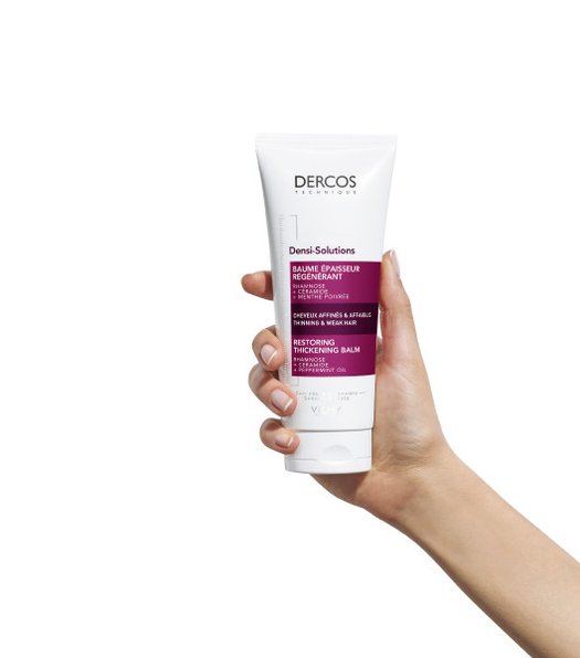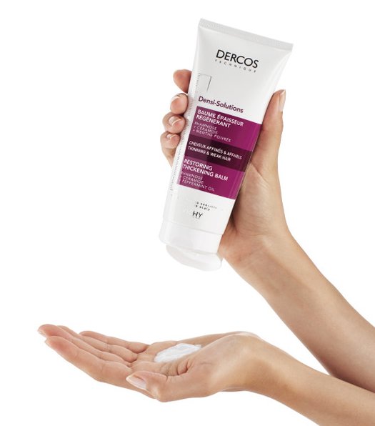 Na gebruik van Dercos Densi-Solutions Shampoo aanbrengen op uitgespoeld en nog vochtig haar. Aanbrengen bij de haaraanzet en verspreiden over de lengtes van het haar. Eén tot twee minuten laten inwerken, daarna grondig uitspoelen.